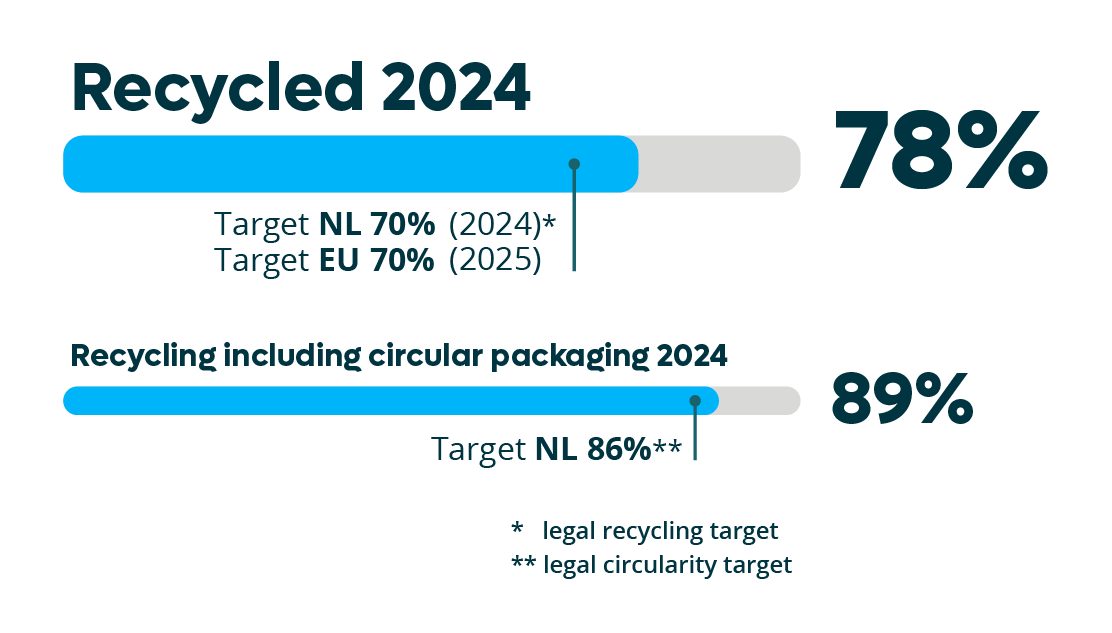 In 2024, 89% of glass packaging in the Netherlands was circular, which was well above the legal target of 86%.