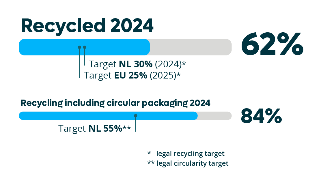 In 2024, 84% of wood packaging in the Netherlands was recycled or reused, which was well above the legal target of 55%.