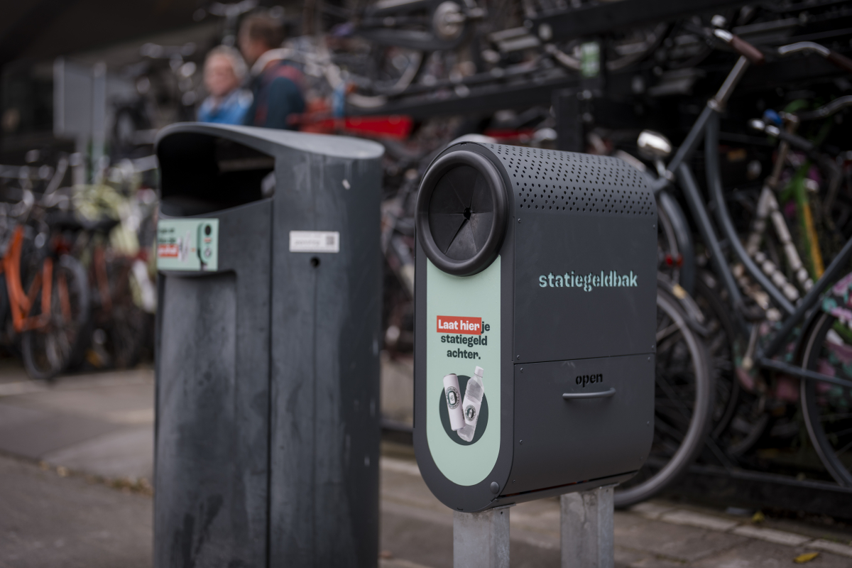 Vandaag is in Rotterdam de pilot met vernieuwde statiegeldbakken officieel van start gegaan. Aan de Stationssingel achter Rotterdam Centraal onthulden wethouder Pascal Lansink-Bastemeijer (Buitenruimte en Mobiliteit) en Jeroen Hillen, directeur van Statiegeld Nederland namens Verpact, samen de eerste vernieuwde statiegeldbak. In totaal zijn er 31 bakken geplaatst in de buurt van reguliere prullenbakken, waarin consumenten hun statiegeldflesjes en –blikjes kunnen achterlaten. De statiegeldbakken zijn voorzien van een klep aan de onderzijde die automatisch sluit, zodat statiegeldverzamelaars op een hygiënische manier bij de flesjes en blikjes kunnen. De pilot moet voorkomen dat reguliere prullenbakken worden opengebroken en ervoor zorgen dat minder zwerfafval op straat terechtkomt. Rotterdam is de eerste gemeente die de vernieuwde versie van de statiegeldbakken in gebruik neemt.