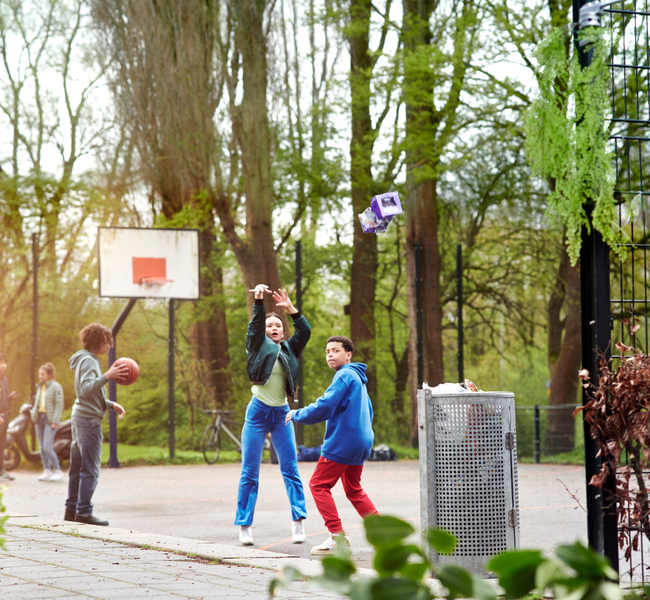 De Getrainde Gooier stimuleert milieuvriendelijk kuddegedrag. Het enige wat je daarvoor hoeft te doen is je afval op sportieve wijze netjes weg te gooien. Precies op het moment dat iedereen kijkt. Niet alleen de natuur is daar blij mee. Je houdt ook je eigen speelveld schoon. En hoe mooier de worp, hoe groter de kans op een daverend applaus.